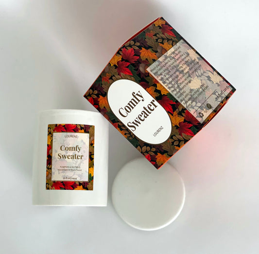 LOURENZ Comfy Sweater Duftkerze Kürbis Muskatnuss und Vanille mit Holzdocht und Deckel