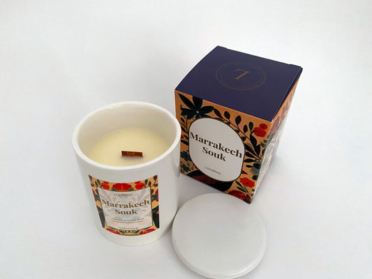 LOURENZ Marrakech Souk Duftkerze Tabak und Tonkabohne mit Holzdocht und Deckel